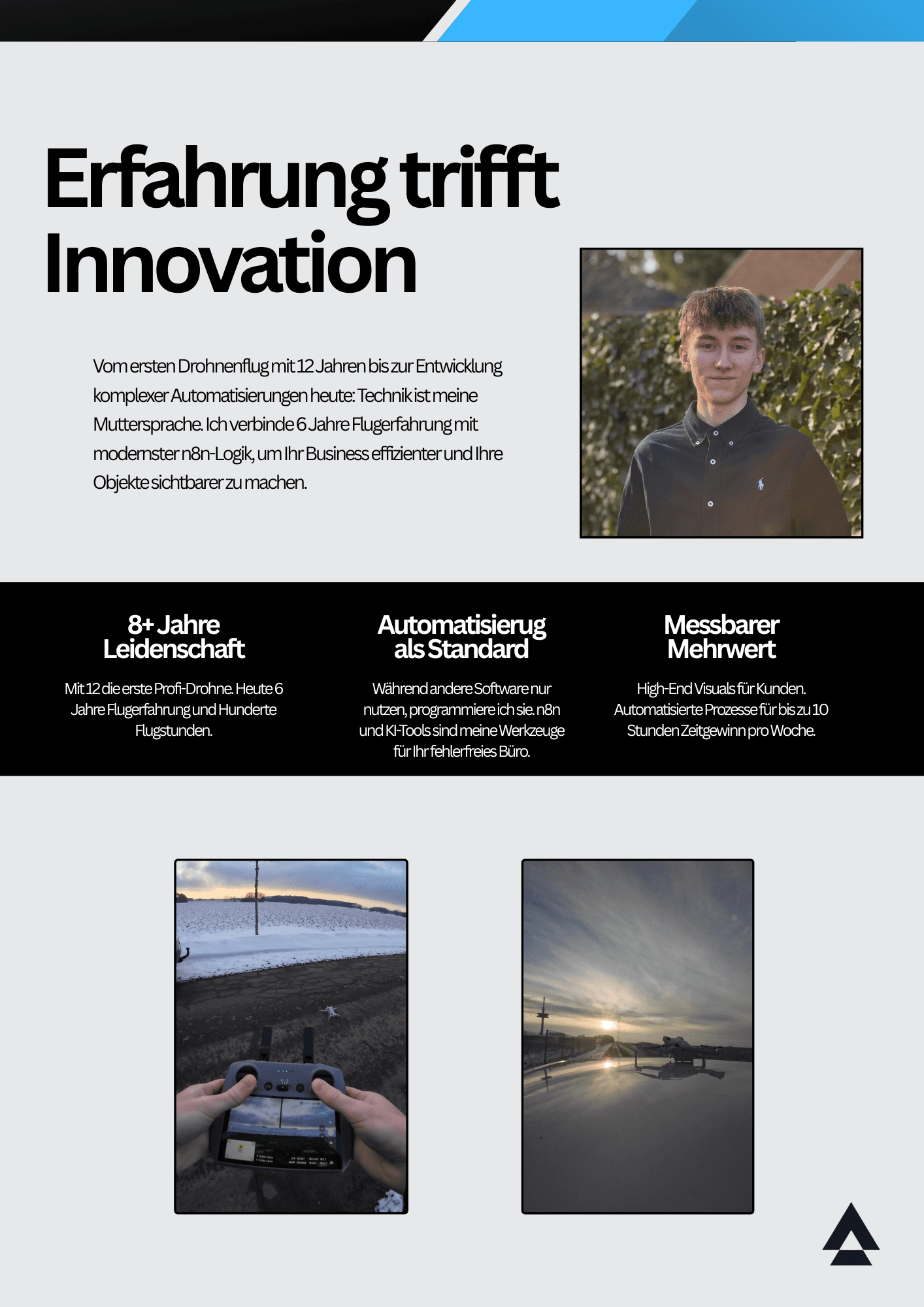Seit über 8 Jahren beschäftige ich mich intensiv mit Drohnentechnologie. Heute kombiniere ich diese Leidenschaft mit smarter KI-Automation, um Immobilienvermarktung auf ein neues Level zu heben. Mein Ziel ist es, für Sie Sichtbarkeit zu schaffen und gleichzeitig wertvolle Zeit im Büroalltag zu gewinnen.
