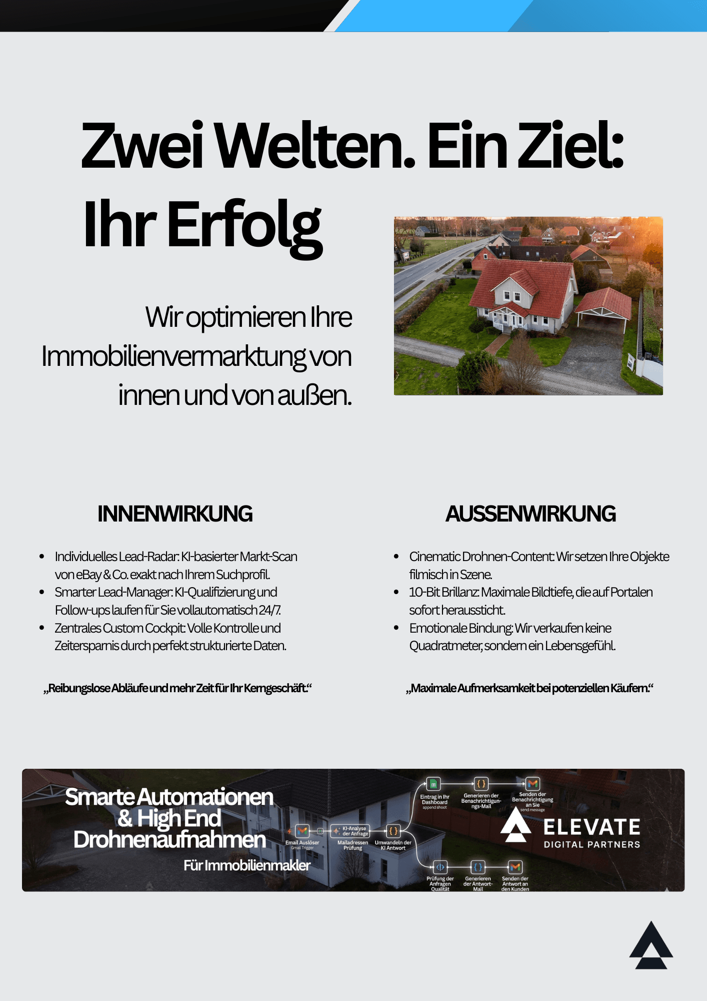 Drohnen-Expertise: Jahrelange Erfahrung in der präzisen Steuerung für Aufnahmen, die Immobilien aus der Masse hervorheben.