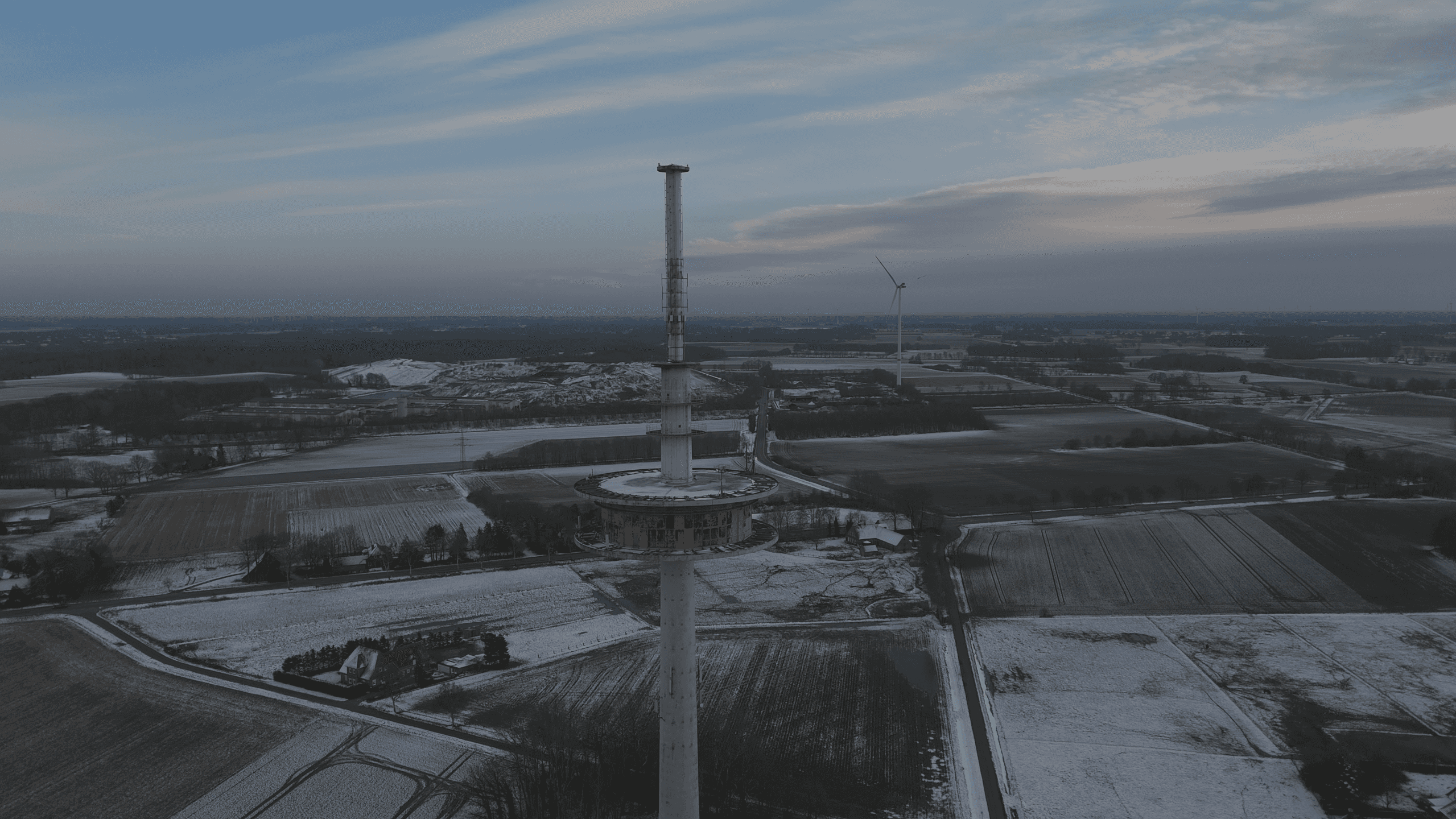 Das Bild zeigt das unbearbeitete Rohmaterial. Es wirkt flach, kontrastarm und farblos. Doch genau hier liegt der Schatz: In diesen Daten sind alle Details der winterlichen Felder und der feinen Strukturen des Fernsehturms gespeichert.